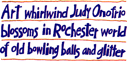 There are other advantages to having an original neighbor. "I never throw anything away," said P.G. "I take it to Judy, and she makes art out of it. Broken mirrors and bowling balls are especially good. I don -think she's ever had enough old bowling balls."