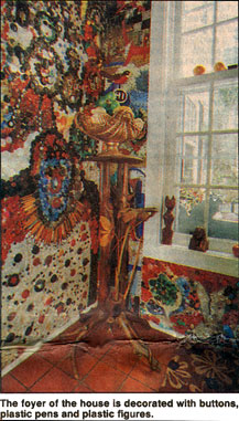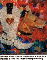 Judy Onofrio had always been interested in an, inspired mostly by a free- spirited' aunt who built shell niches in her house, painted scenes on her furniture and had a magical garden that had enchanted Judy as a girl. In the spirit of Aunt Trude, Judy has always collected stuff -- 90s ceramics, '50s jewelry and art by eccentric visionaries. (Artist-decorated dolls made from Mrs. Butterworth syrup jars line the den shelves. "I see her [Mrs. 8] as a vehicle for self-portraiture," Onofrio explained.)